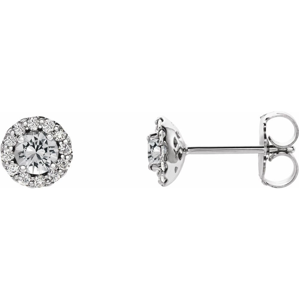 Platinum Sapphire and 1/6 cttw Diamond Stud Earrings (G-H, SI2-SI3)