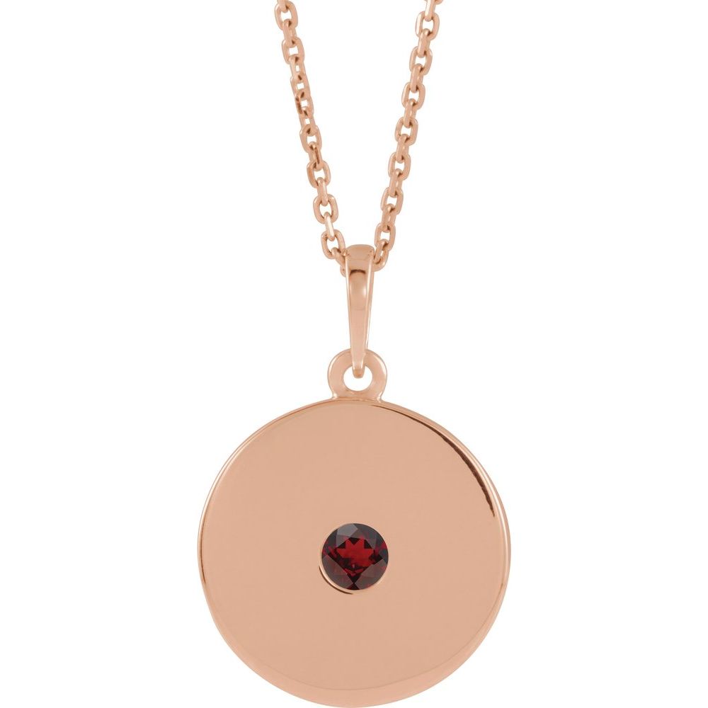 14k Rose Gold Mozambique Garnet Disc Solitaire Necklace (16.2x14.1mm), 16-18"