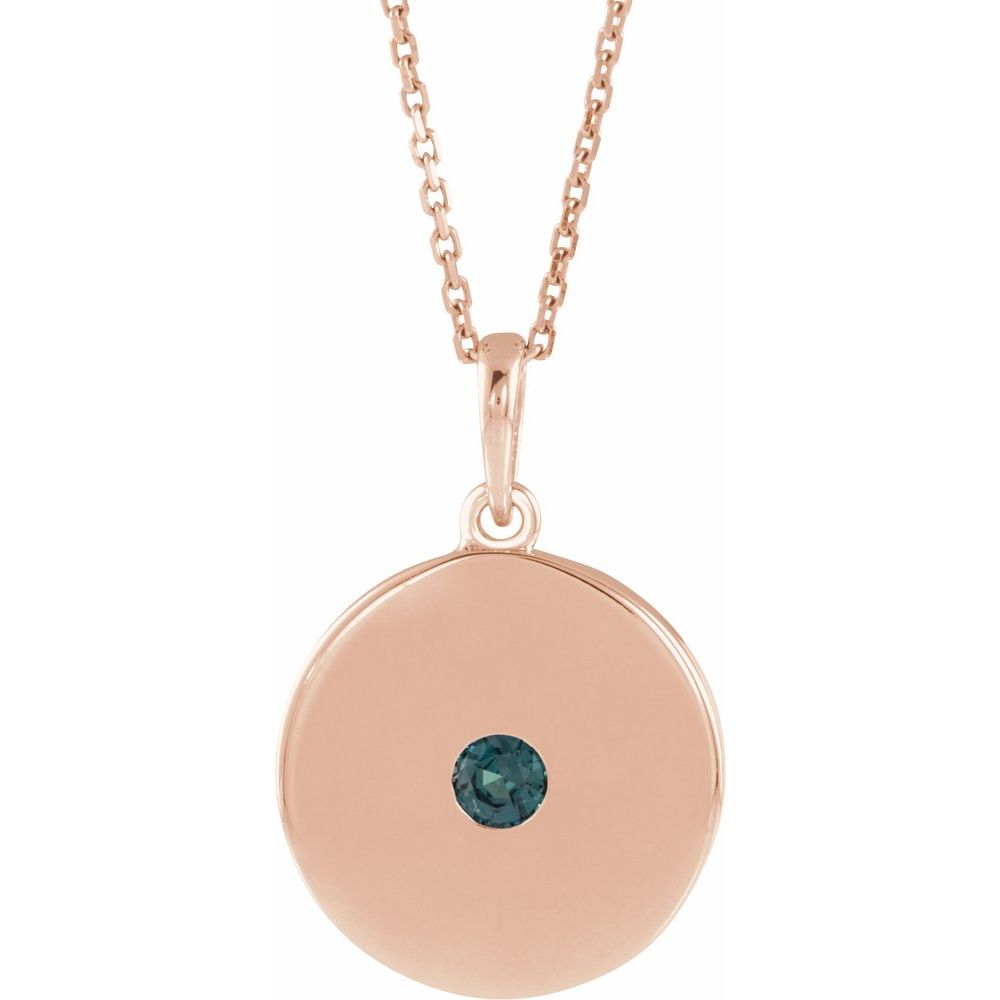 14k Rose Gold Lab-Grown Alexandrite Disc Solitaire Necklace (16.2x14.1mm), 16-18"