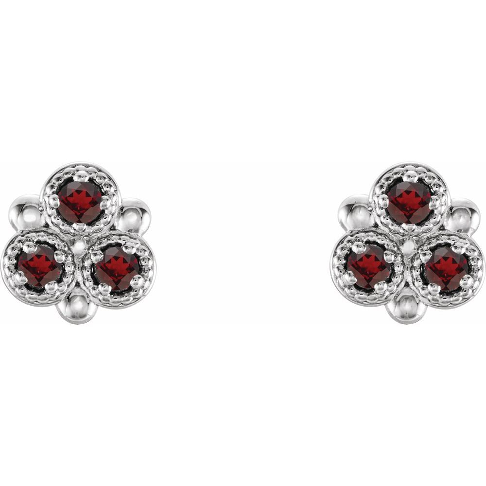 Platinum Mozambique Garnet 3 Three-Stone stud Earrings