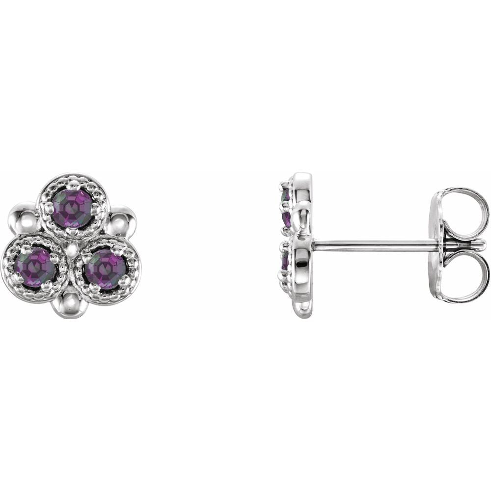 14k White Gold Alexandrite 3 Three-Stone stud Earrings