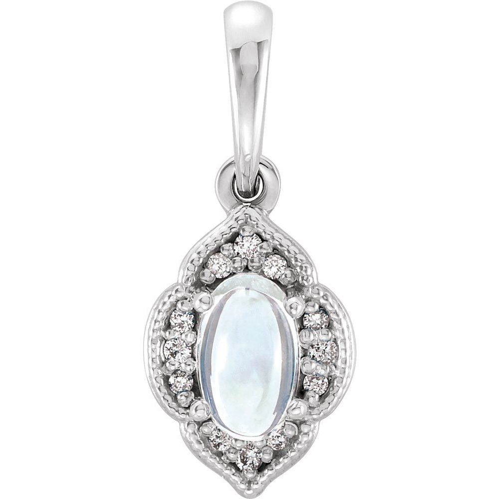 Platinum Oval Shape Rainbow Moonstone and .03 cttw Diamond Clover Pendant (15x6.6mm, G-H, SI2-SI3)