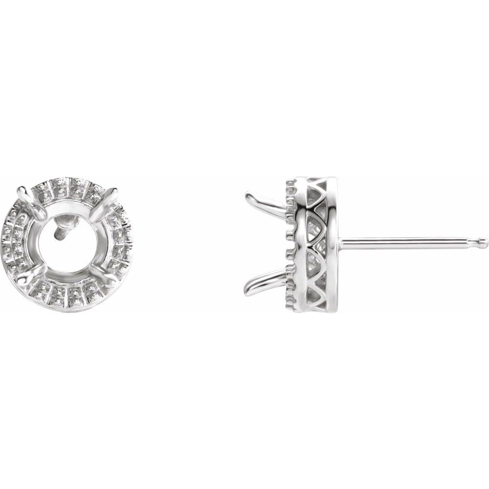 Platinum 5mm Round Shape Halo-Style Earring Mounting (Only One Piece Sold, Not the Pair, Mounting Only, Not All Stones Included)