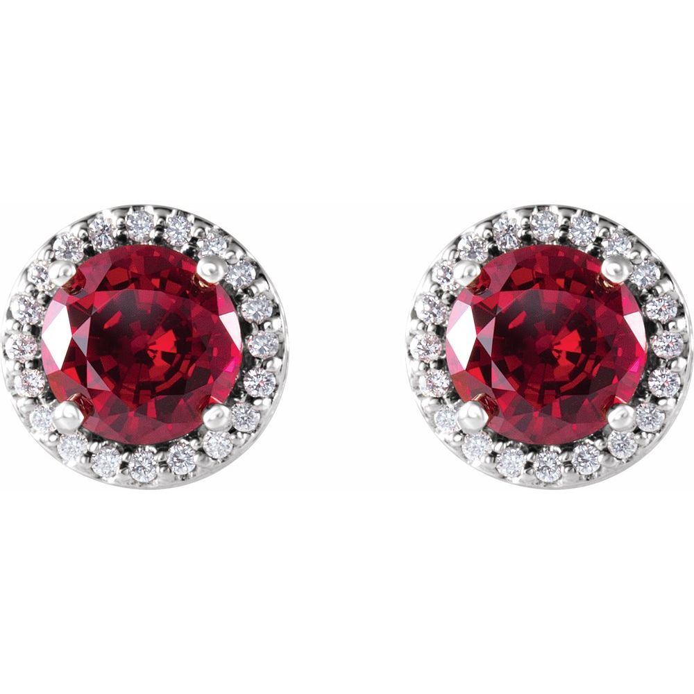 Description: Lab-Created Ruby And 1/10 cttw Diamond Earrings