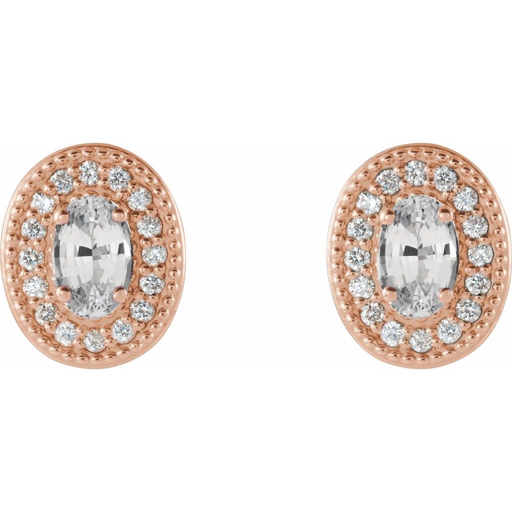 14k Rose Gold Sapphire and 1/8 cttw Diamond Halo-Style Stud Earrings