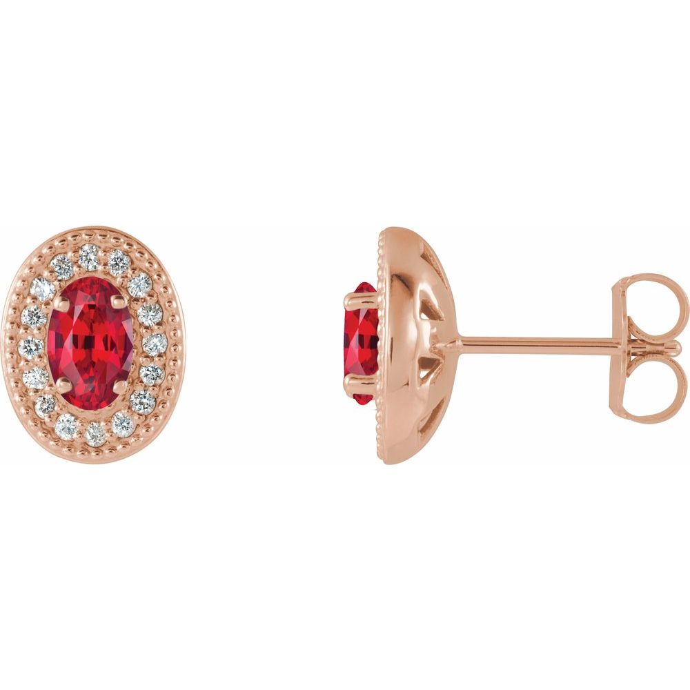 14k Rose Gold Ruby and 1/8 cttw Diamond Halo-Style Stud Earrings