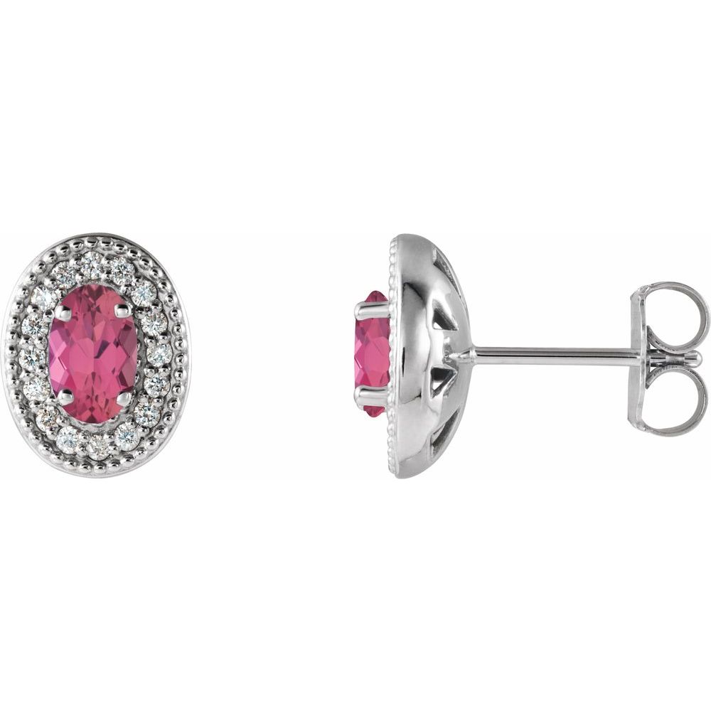 Platinum Pink Tourmaline and 1/5 cttw Diamond Halo-Style Stud Earrings (G-H, SI2-SI3)