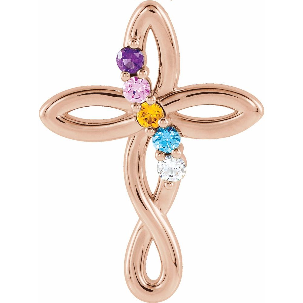 Description: 14k Rose Gold 5-Stone Family Cross Pendant Mounting
