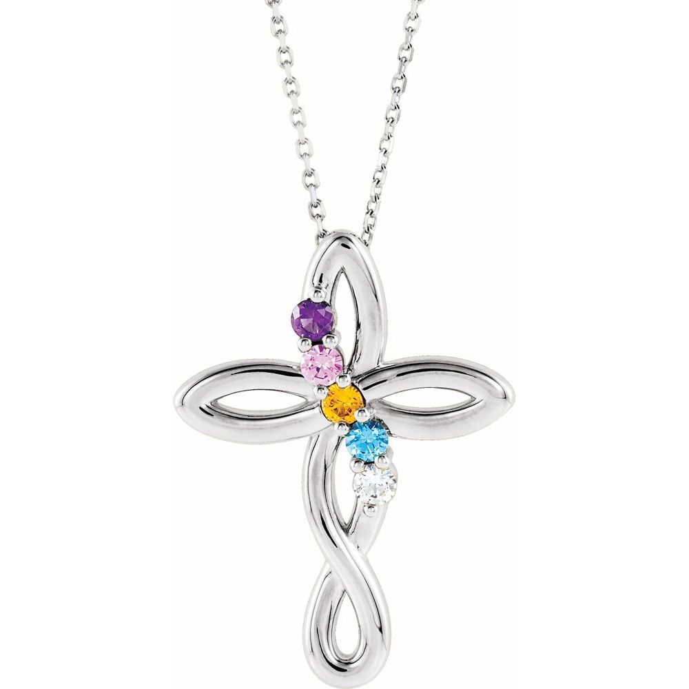 Description: 14k White Gold 5-Stone Family Cross 16-18" Necklace Mounting