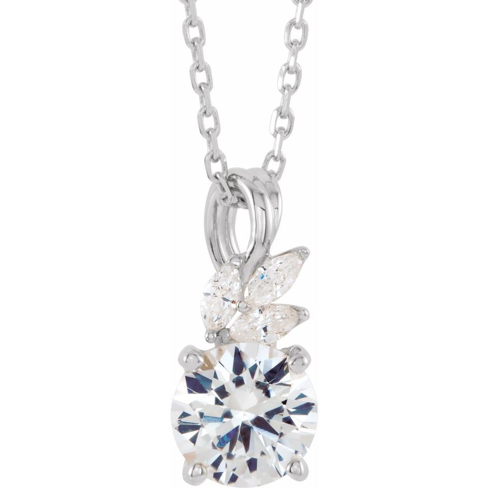 Platinum Round Shape Sapphire and 1/10 cttw Diamond Necklace (13.5x5.7mm, G-H, SI2-SI3), 16-18"