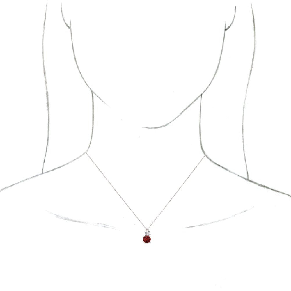 Platinum Round Shape Lab-Grown Ruby and 1/10 cttw Diamond Necklace (13.5x5.7mm, G-H, SI2-SI3), 16-18"