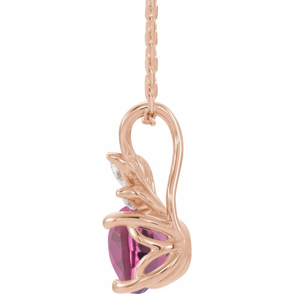 14k Rose Gold Round Shape Pink Tourmaline and 1/10 cttw Diamond Necklace (13.5x5.7mm, G-H, I1), 16-18"