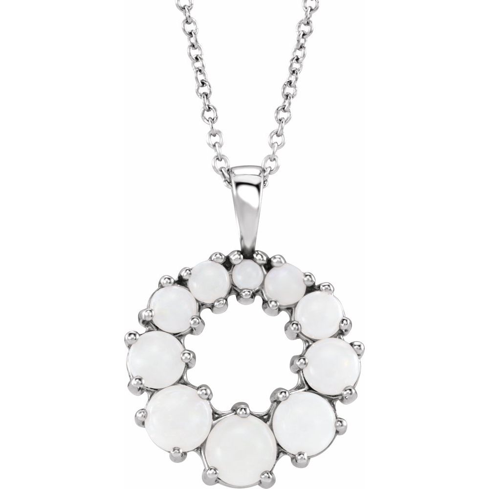 Platinum Round Shape Opal Halo-Style Cabochon Necklace (20.4x15.1mm), 16-18"