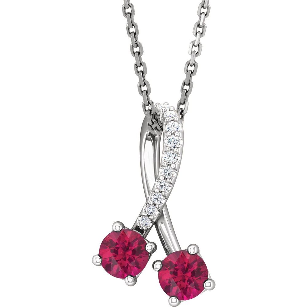 Platinum Round Shape Ruby and .05 cttw Diamond 2 Two-Stone Necklace (16.3x9.9mm), 16-18"
