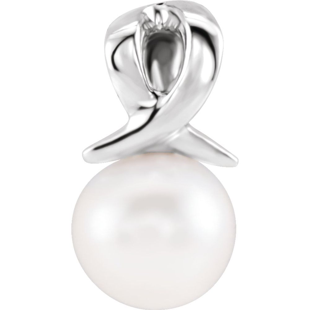 Description: 14k White Gold Freshwater Cultured Pearl Bypass Pendant
