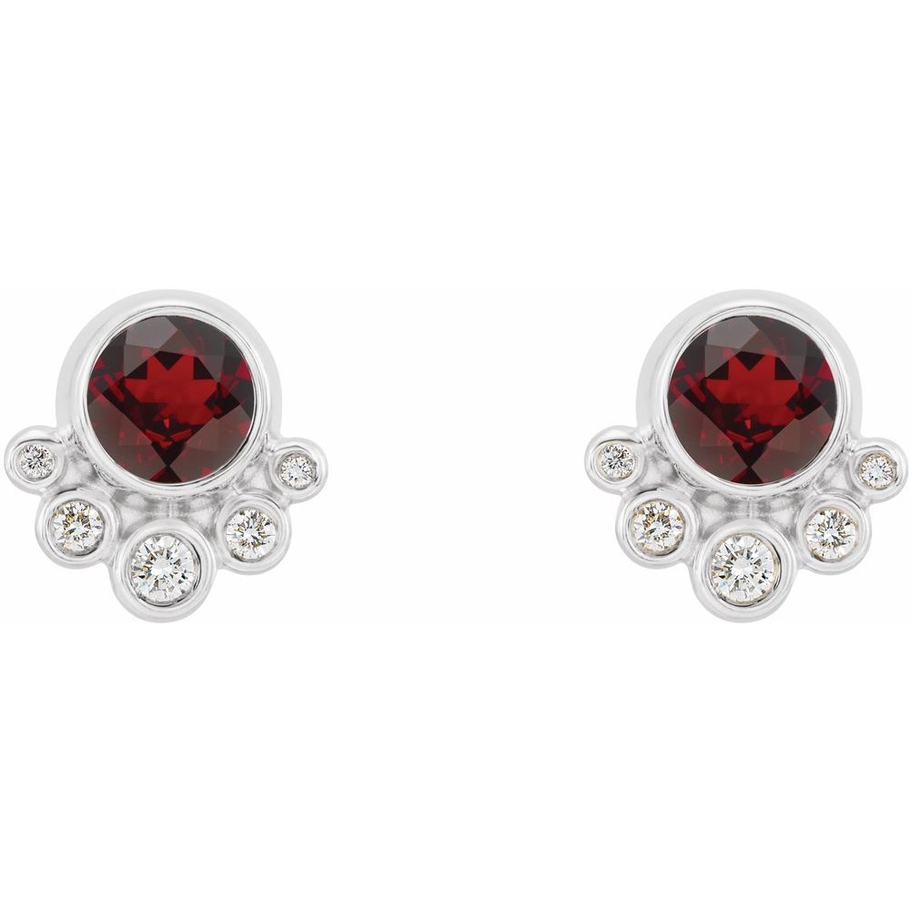 Platinum Mozambique Garnet and 1/8 cttw Diamond Stud Earrings (G-H, SI2-SI3)