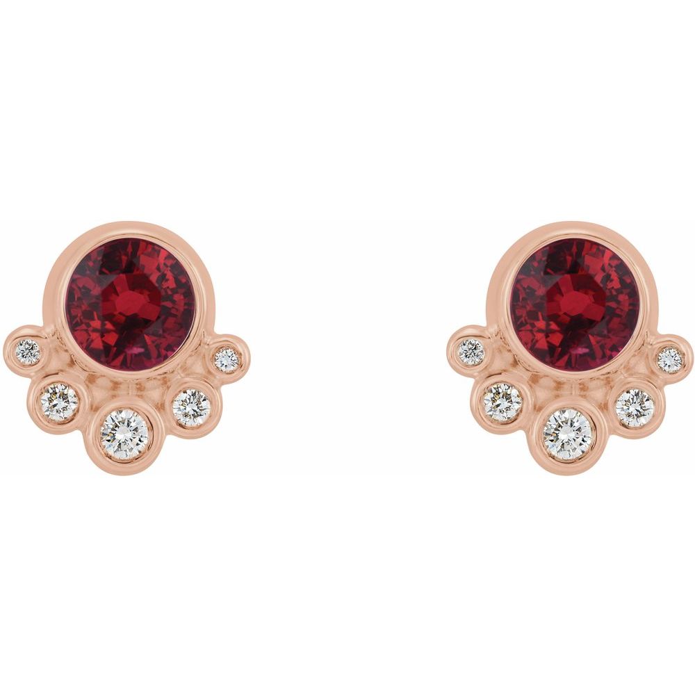 14k Rose Gold Ruby and 1/8 cttw Diamond Stud Earrings (G-H, I1)