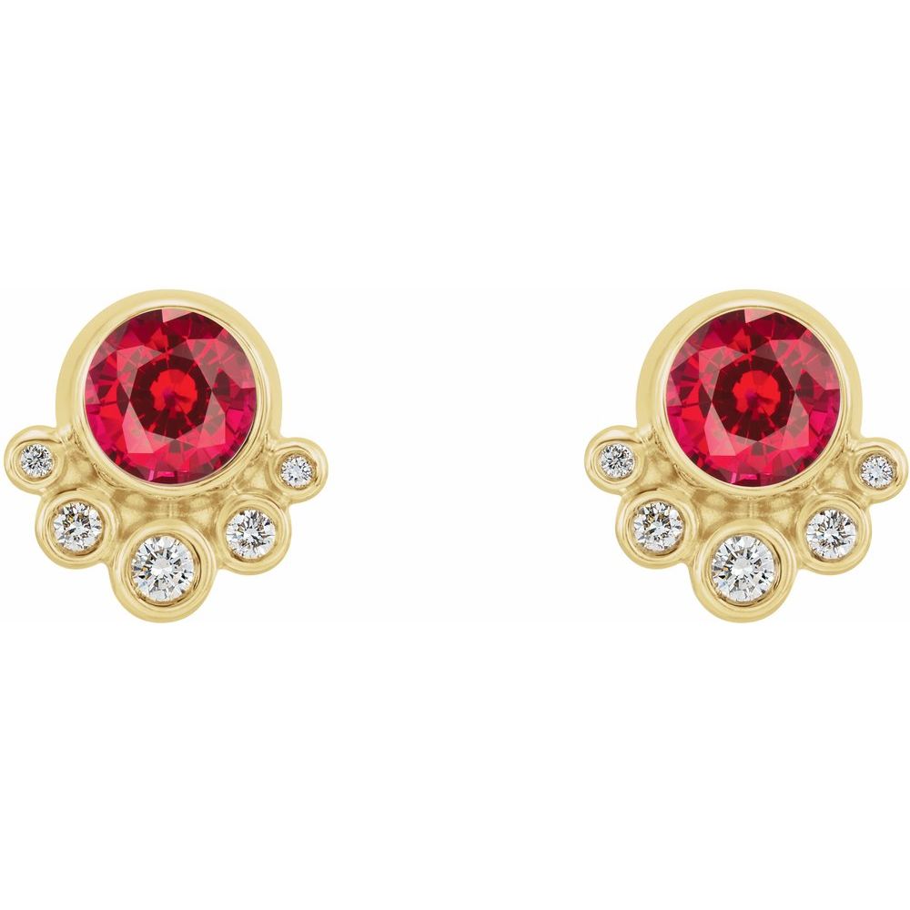 14k Yellow Gold Lab-Grown Ruby and 1/8 cttw Diamond Stud Earrings (G-H, I1)