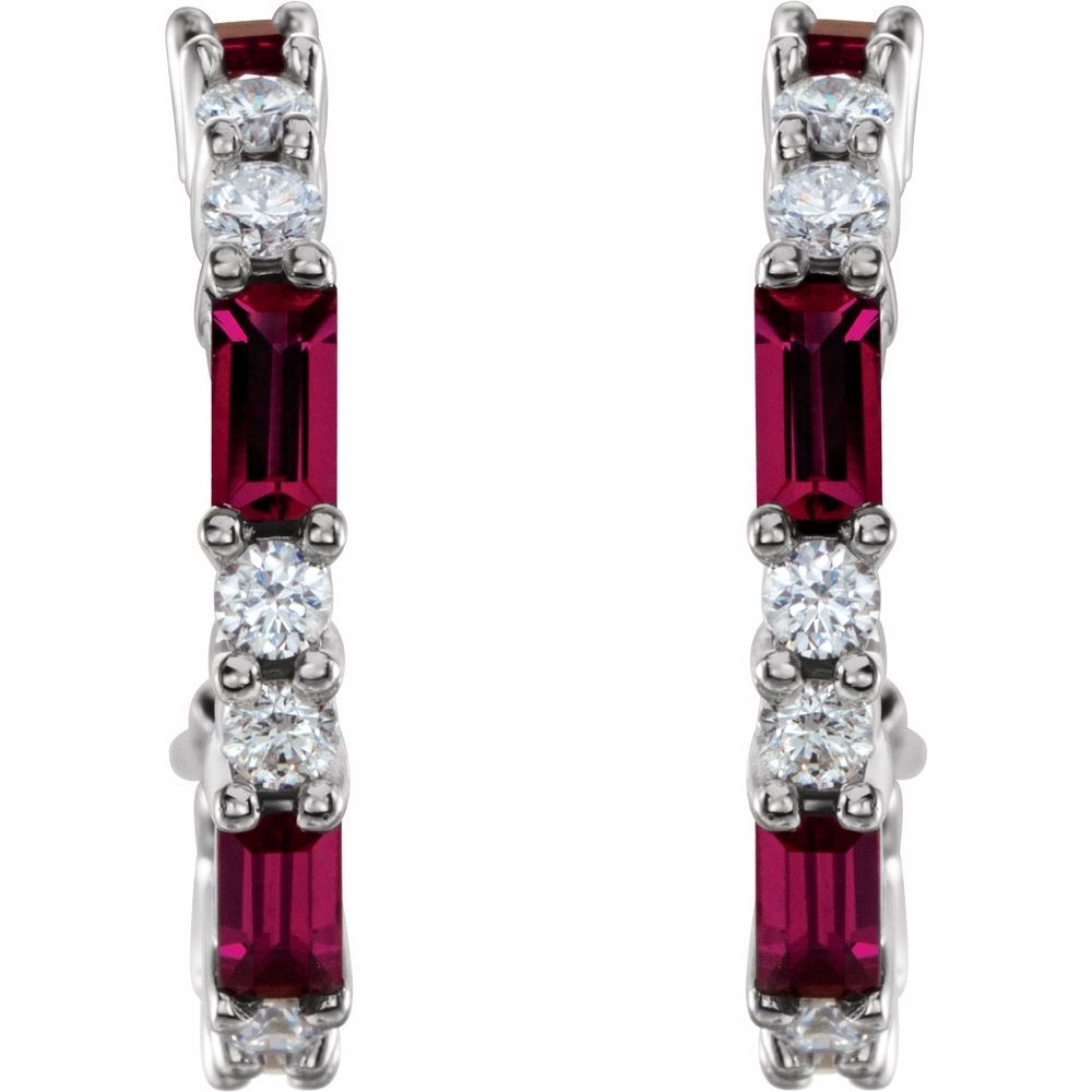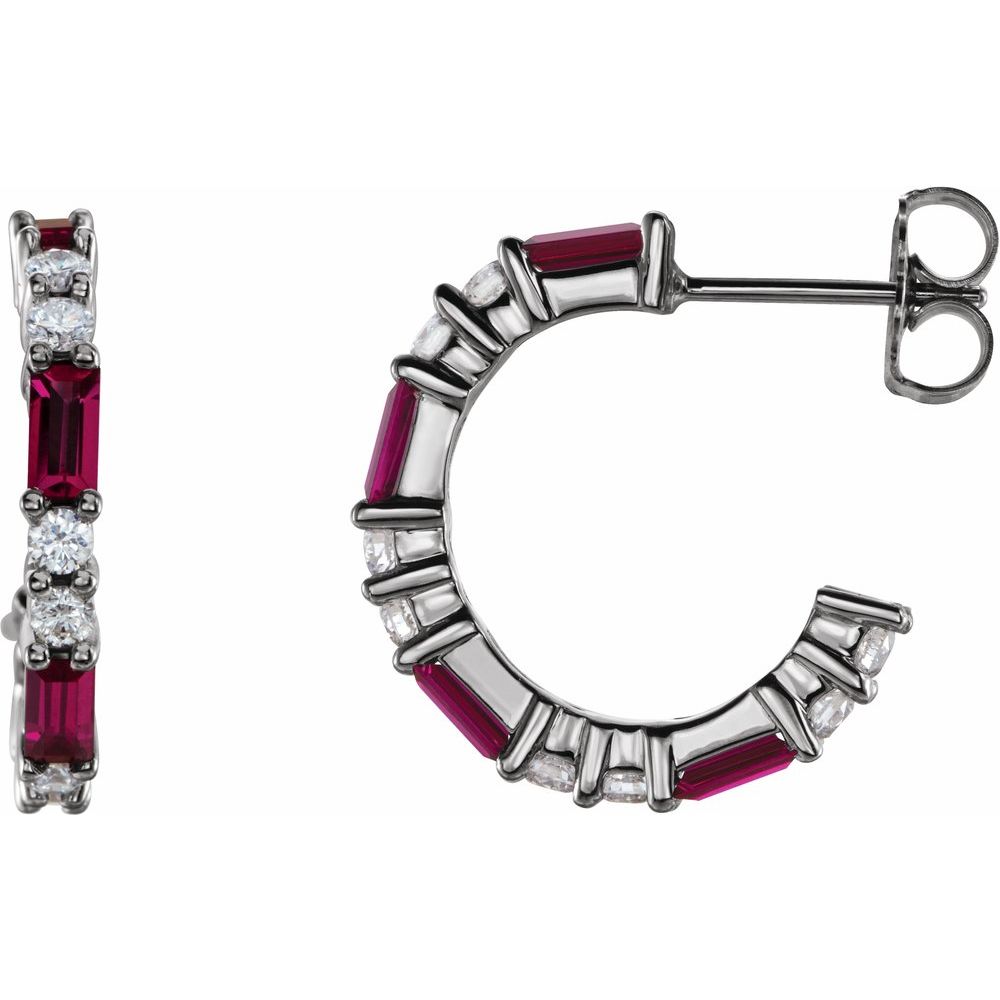 14k White Gold Lab-Grown Ruby and 1/2 cttw Diamond Hoop Earrings (G-H, I1)