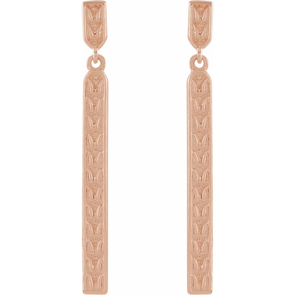 14k Rose Gold Sculptural Bar Drop Dangle Earrings (29x2.4mm)