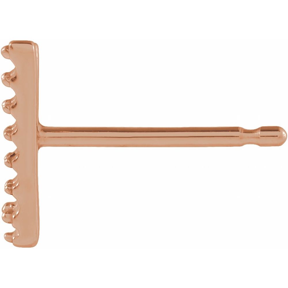 14k Rose Gold Single Initial V Earring Mounting (Only One Piece Sold, Not the Pair, Mounting Only, Not All Stones Included)