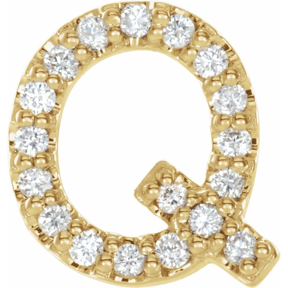 14k Yellow Gold Diamond Single Initial Q Earring (Only One Earring Piece Sold, Not the Pair, 0.07 cttw, G-H, I1)