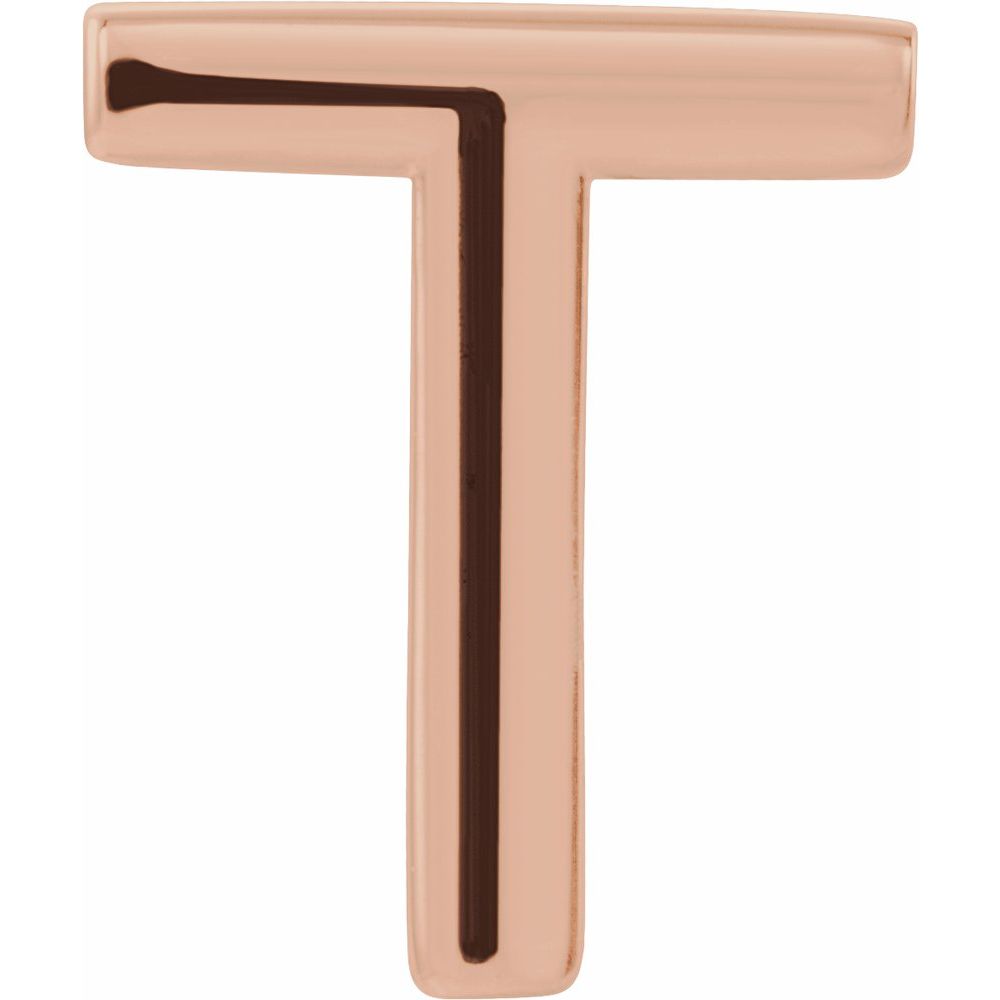 14k Rose Gold Single Initial T Earring (Only One Earring Piece Sold, Not the Pair)