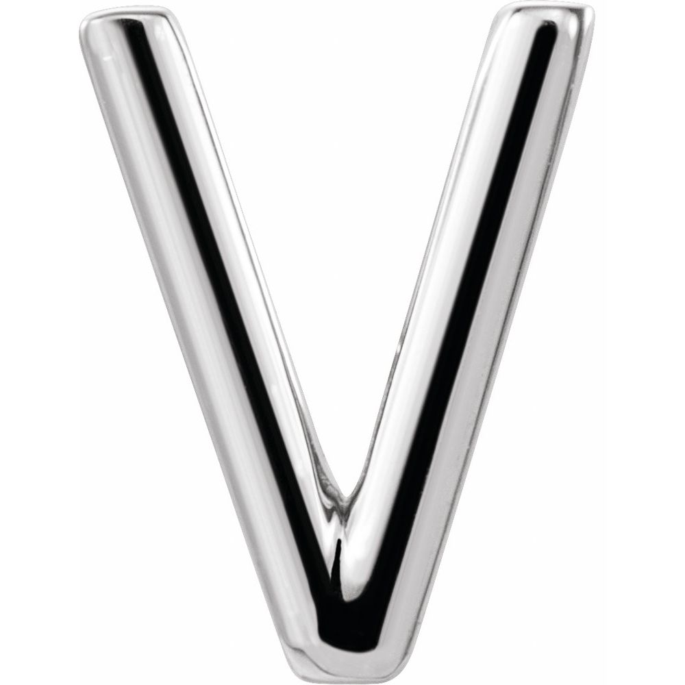 14k White Gold Single Initial V Earring (Only One Earring Piece Sold, Not the Pair)