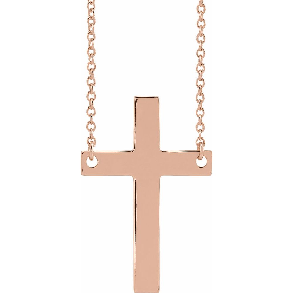 14k Rose Gold Religious Cross Necklace (22.5x15mm), 16"