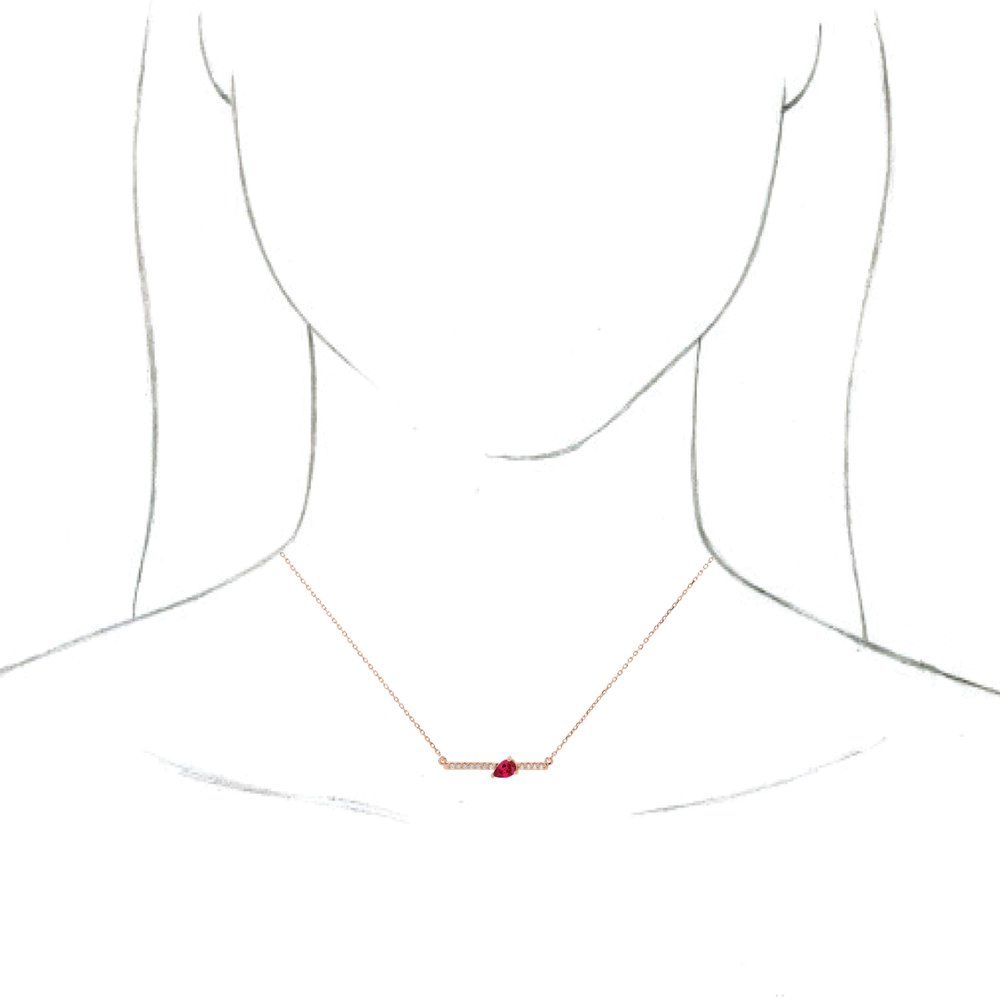 14k Rose Gold Pear Shape Lab-Grown Ruby and 1/10 cttw Diamond Bar Necklace (G-H, I1, 27.52x5.24mm), 18"