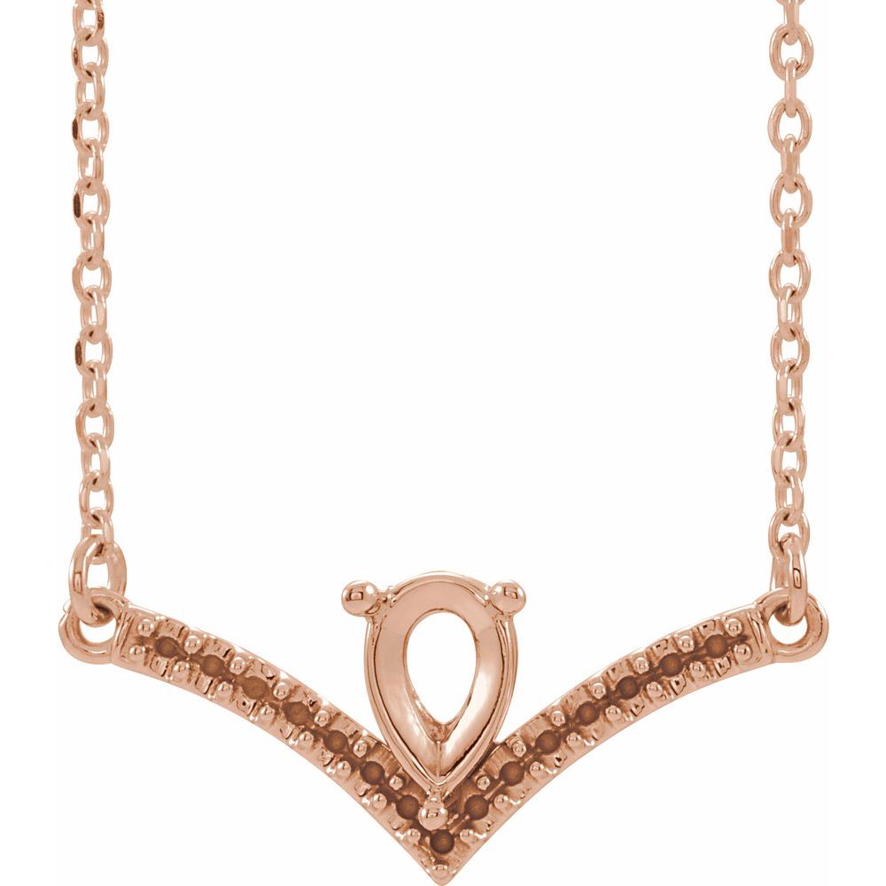 14k Rose Gold Pear Shape Accented V Bar Necklace for Approximately 3/8 cttw (Mounting Only, Not All Stones Included, 19.81x8.29mm), 18"
