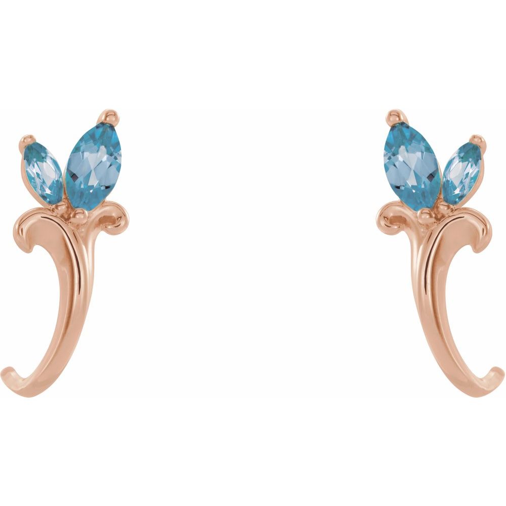 14k Rose Gold Aquamarine Floral-Inspired J-Hoop Earrings