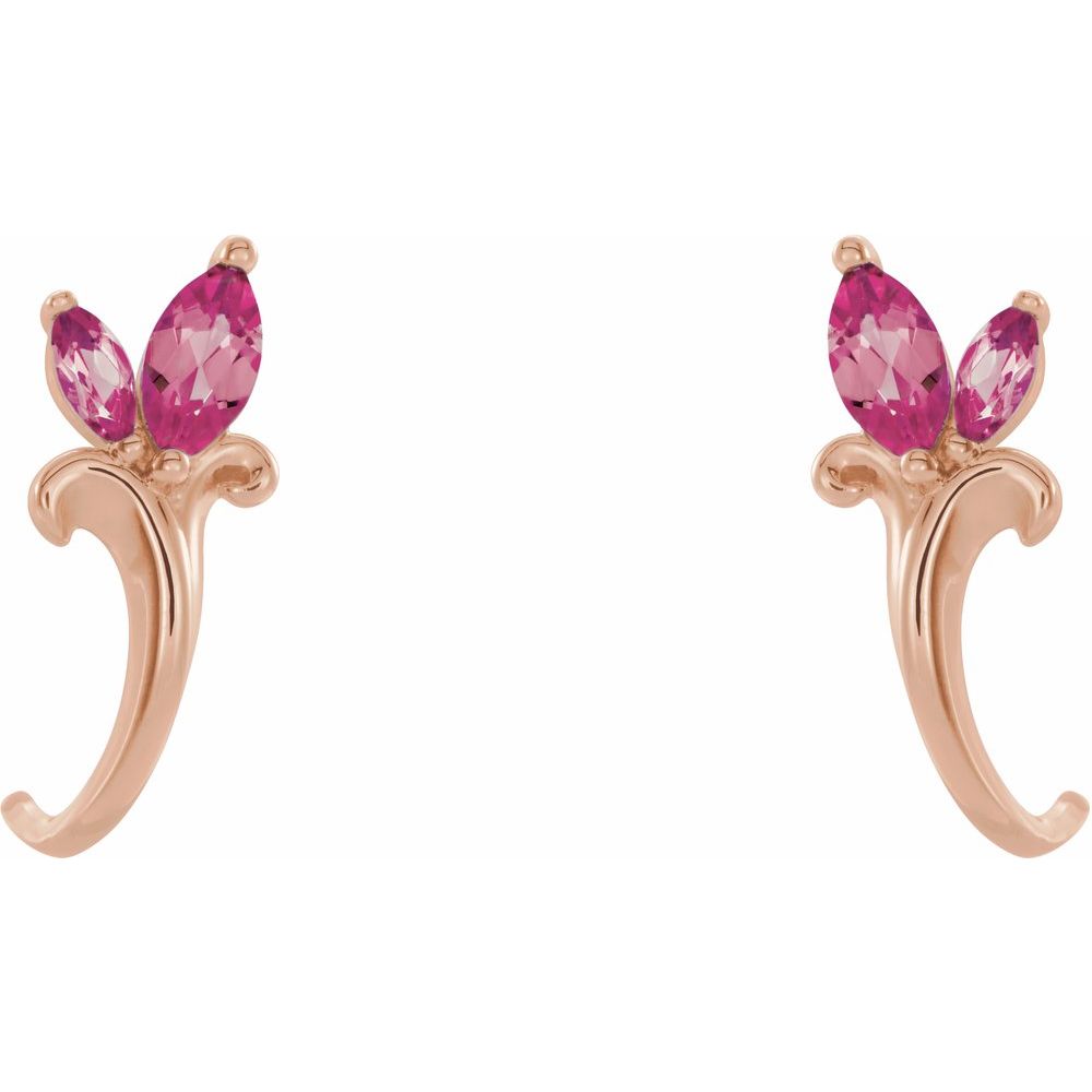 14k Rose Gold Pink Tourmaline Floral-Inspired J-Hoop Earrings