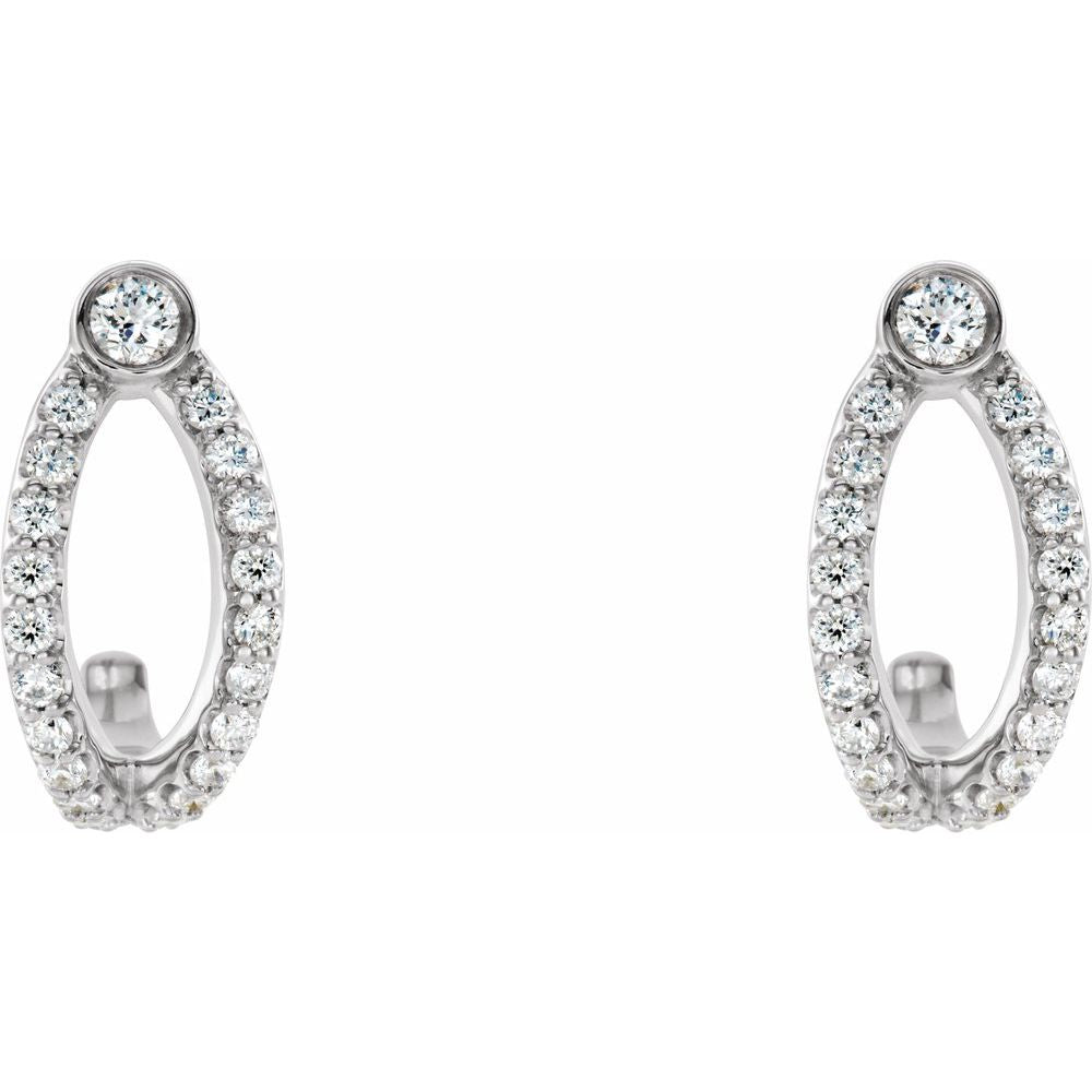 Description: 1/3 cttw Diamond J-Hoop Earrings