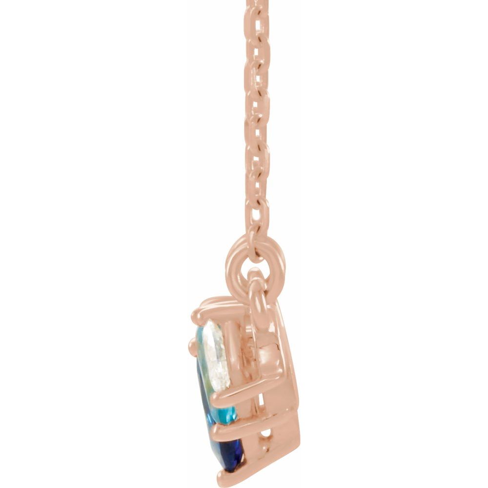 14k Rose Gold Pear Shape Multi-Gemstone and .06 cttw Diamond Bar Necklace (G-H, I1, 11.9x7.7mm), 18"