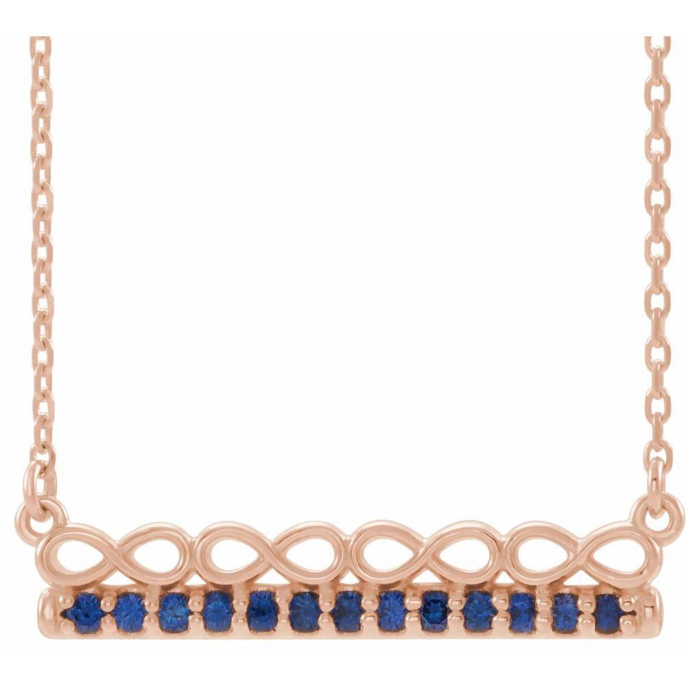 14k Rose Gold Round Shape Blue Sapphire Infinity-Inspired Bar Necklace (25.55x5.53mm), 16"