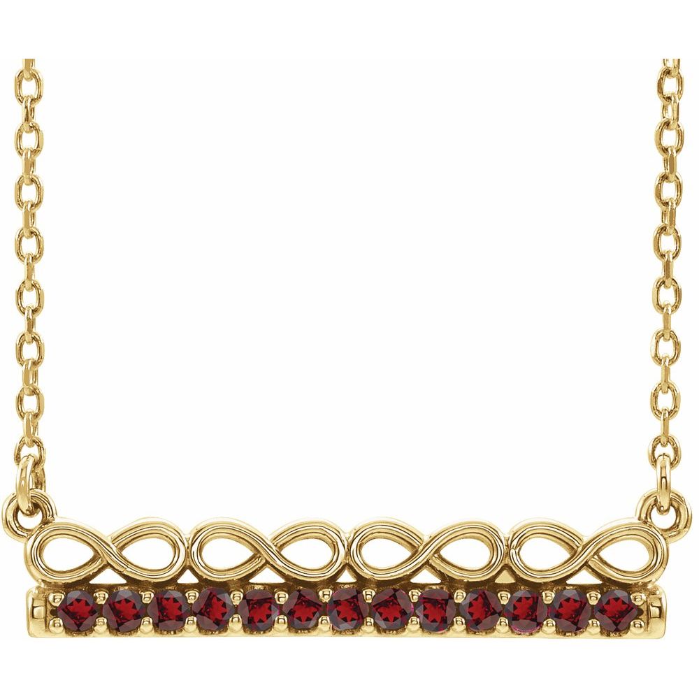 14k Yellow Gold Round Shape Mozambique Garnet Infinity-Inspired Bar Necklace (25.55x5.53mm), 16"