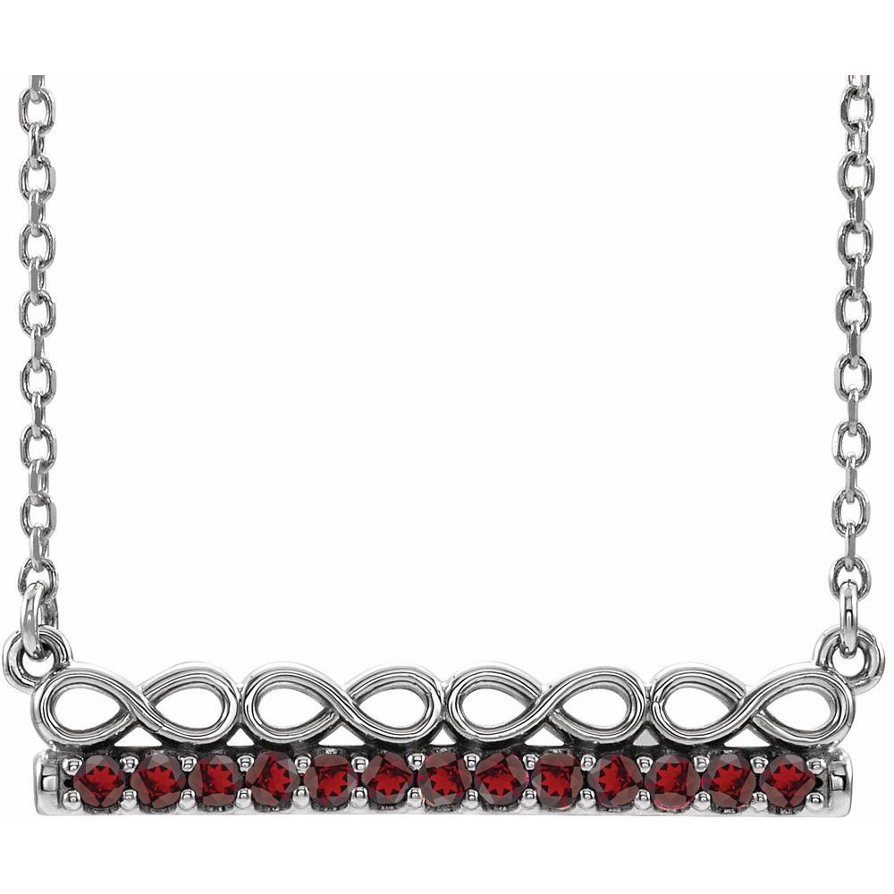 Description: Platinum Mozambique Garnet Infinity-Inspired Bar 18" Necklace