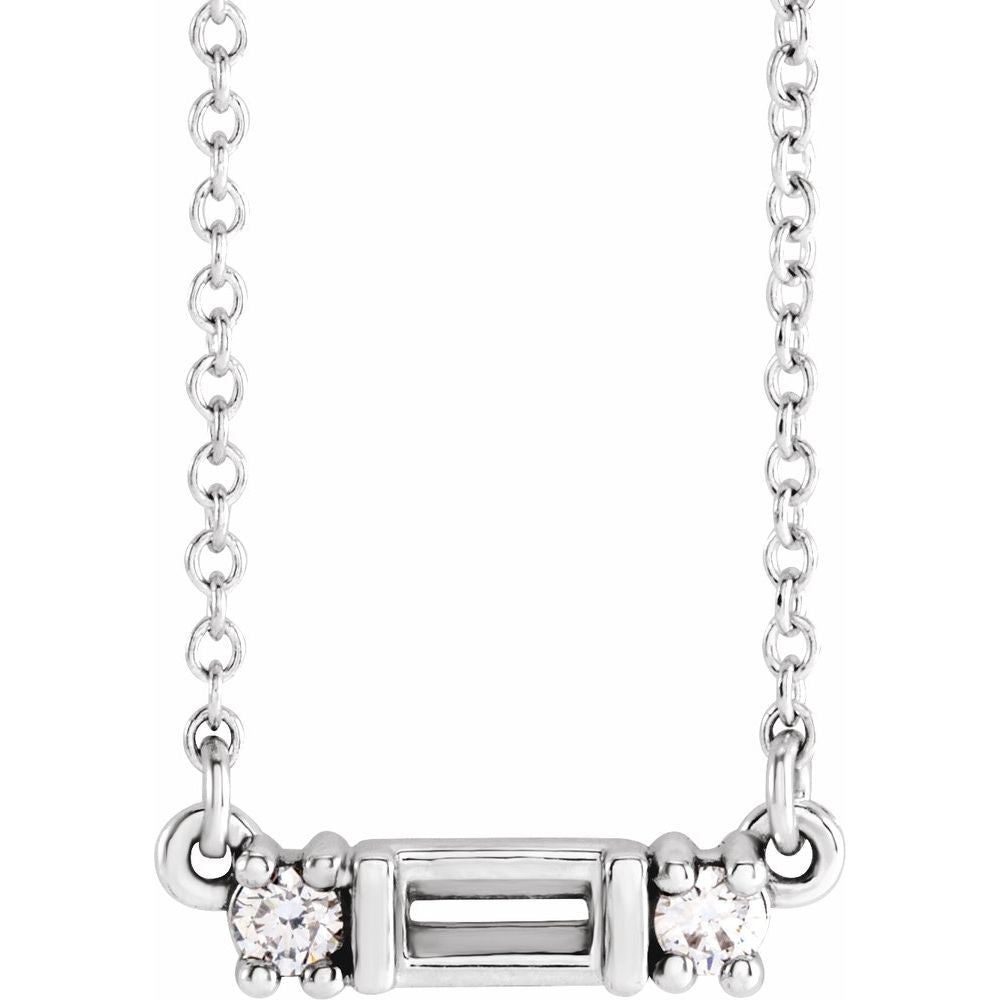 Platinum Straight Baguette Shape 1 One-Stone Diamond Semi-Set Bar Family Necklace (Mounting Only, Not All stones Included, .06 cttw, G-H, SI2-SI3, 12.8x3.5mm), 18"