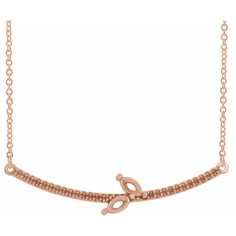 Description: 14k Rose Gold 2-Stone Family Curved Bar 16" Necklace Mounting