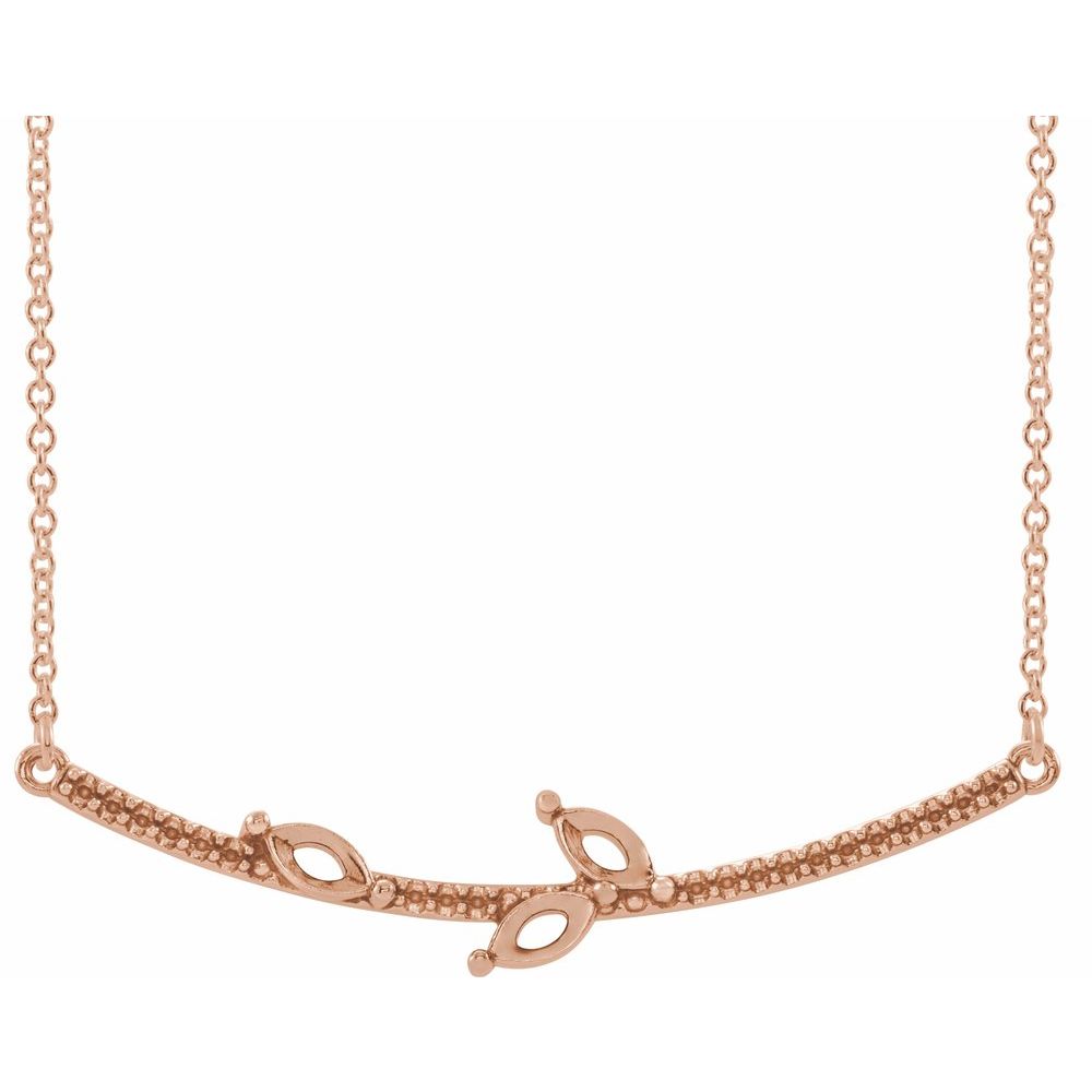 14k Rose Gold Marquise Shape 3-Stone Curved Bar Family Necklace for Approximately 1/2 cttw (Mounting Only, Not All Stones Included, 38.77x9.22mm), 16"