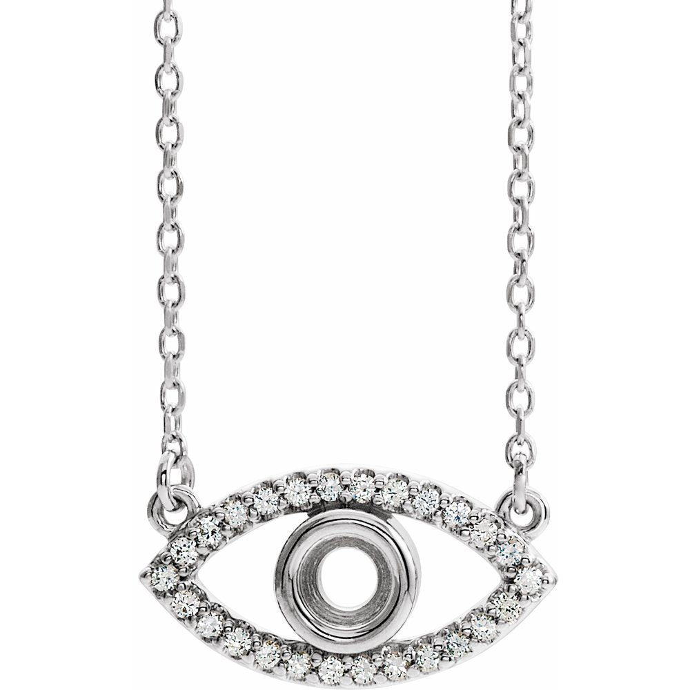 Description: Platinum 3.5mm Round White Sapphire Semi-Set Evil Eye 16" Necklace