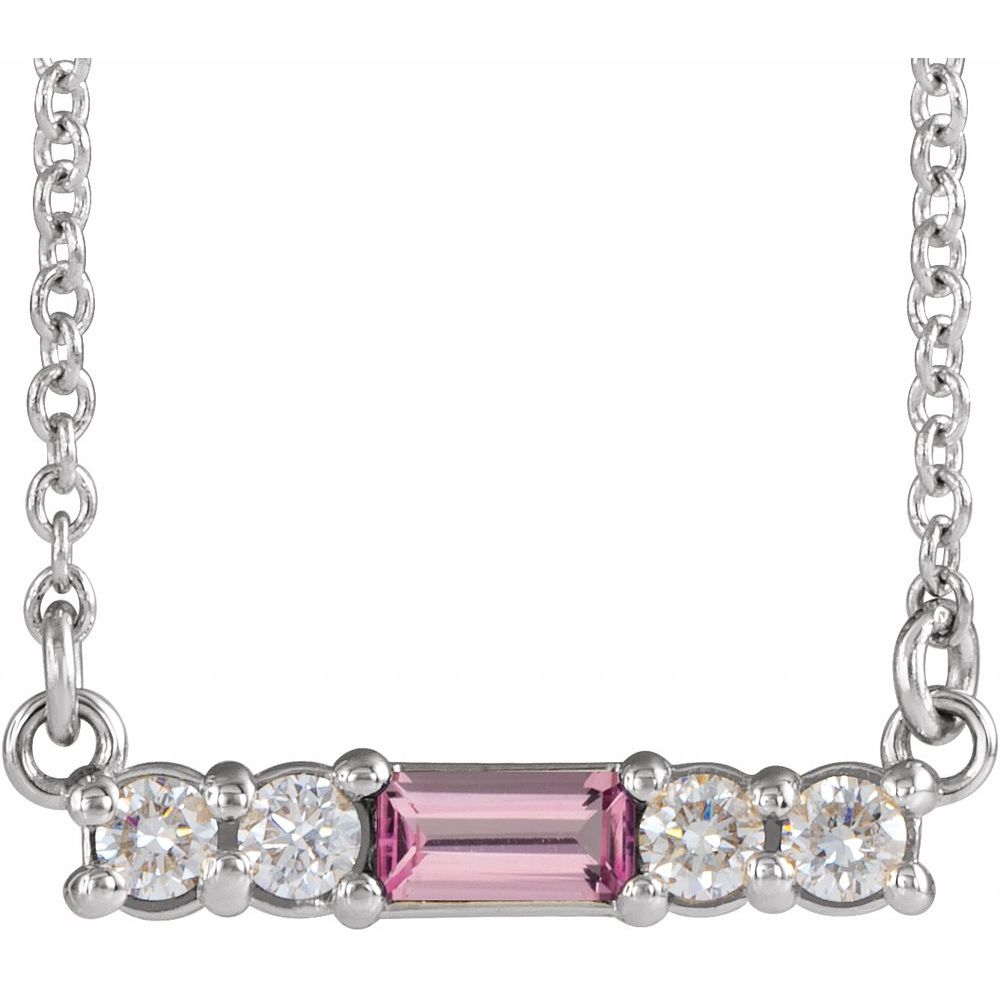 Platinum Straight Baguette Shape Pink Tourmaline and 1/5 cttw Diamond Bar Necklace (G-H, SI2-SI3, 15.8x3.8mm), 16"