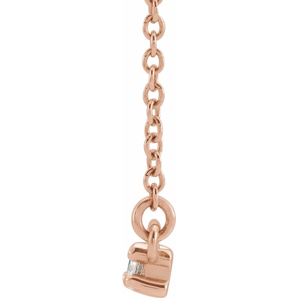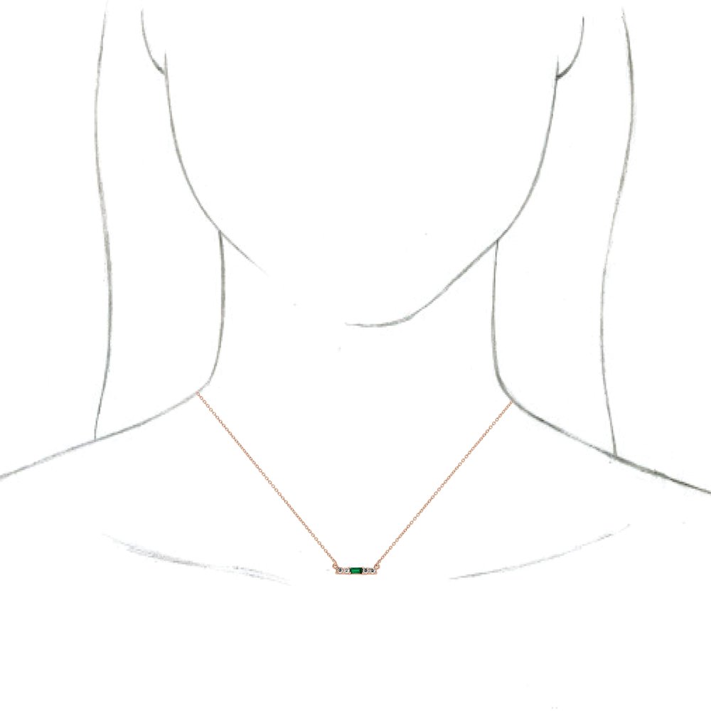 14k Rose Gold Straight Baguette Shape Lab-Grown Emerald and 1/5 cttw Diamond Bar Necklace (G-H, I1, 15.8x3.8mm), 18"