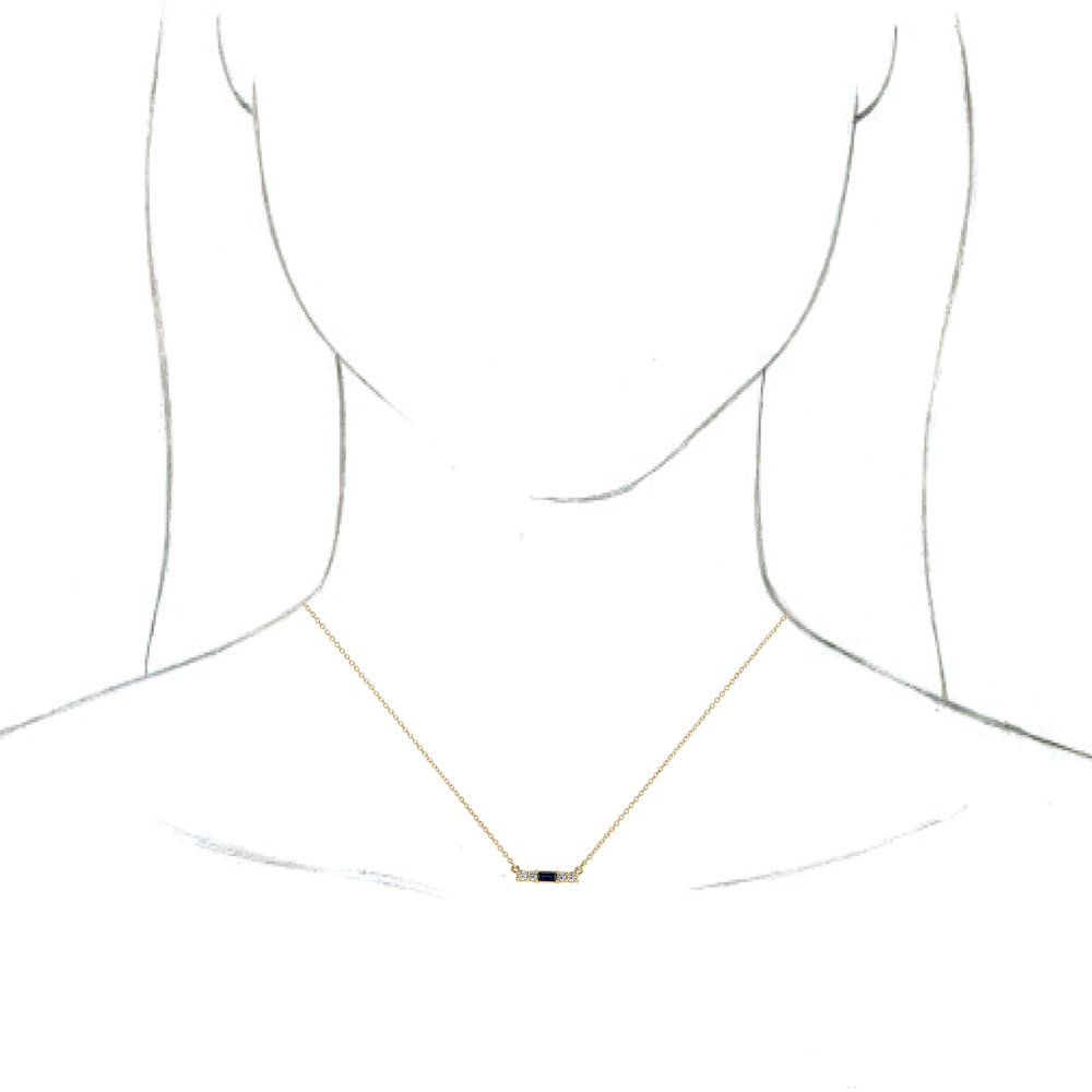 14k Yellow Gold Straight Baguette Shape Lab-Grown Blue Sapphire and 1/5 cttw Diamond Bar Necklace (G-H, I1, 15.8x3.8mm), 18"