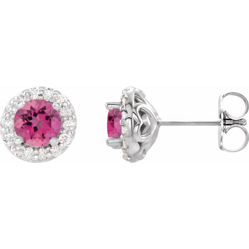14k White Gold Pink Tourmaline and 1/6 cttw Diamond Stud Earrings (G-H, I1)