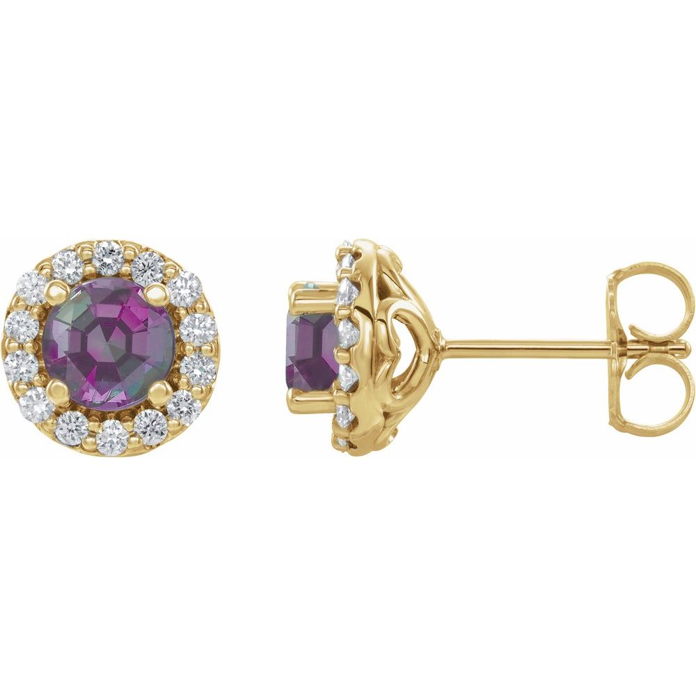 14k Yellow Gold Lab-Grown Alexandrite and 1/6 Diamond Stud Earrings