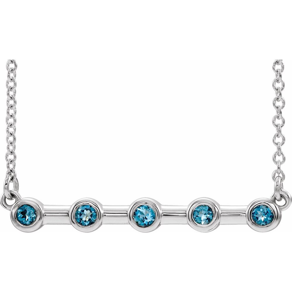Platinum Round Shape Aquamarine Bezel-Set Bar Necklace (27x4mm), 16"
