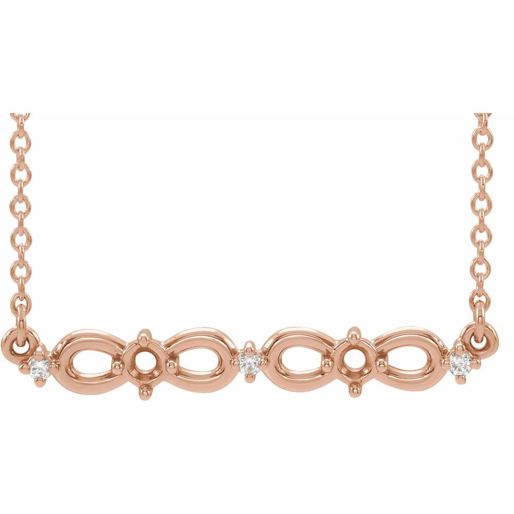 14k Rose Gold Round Shape 2 Two-Stone Diamond Semi-Set Bar Family Necklace (Mounting Only, Not All stones Included, .03 cttw, G-H, I1, 26.33x3.68mm), 16"