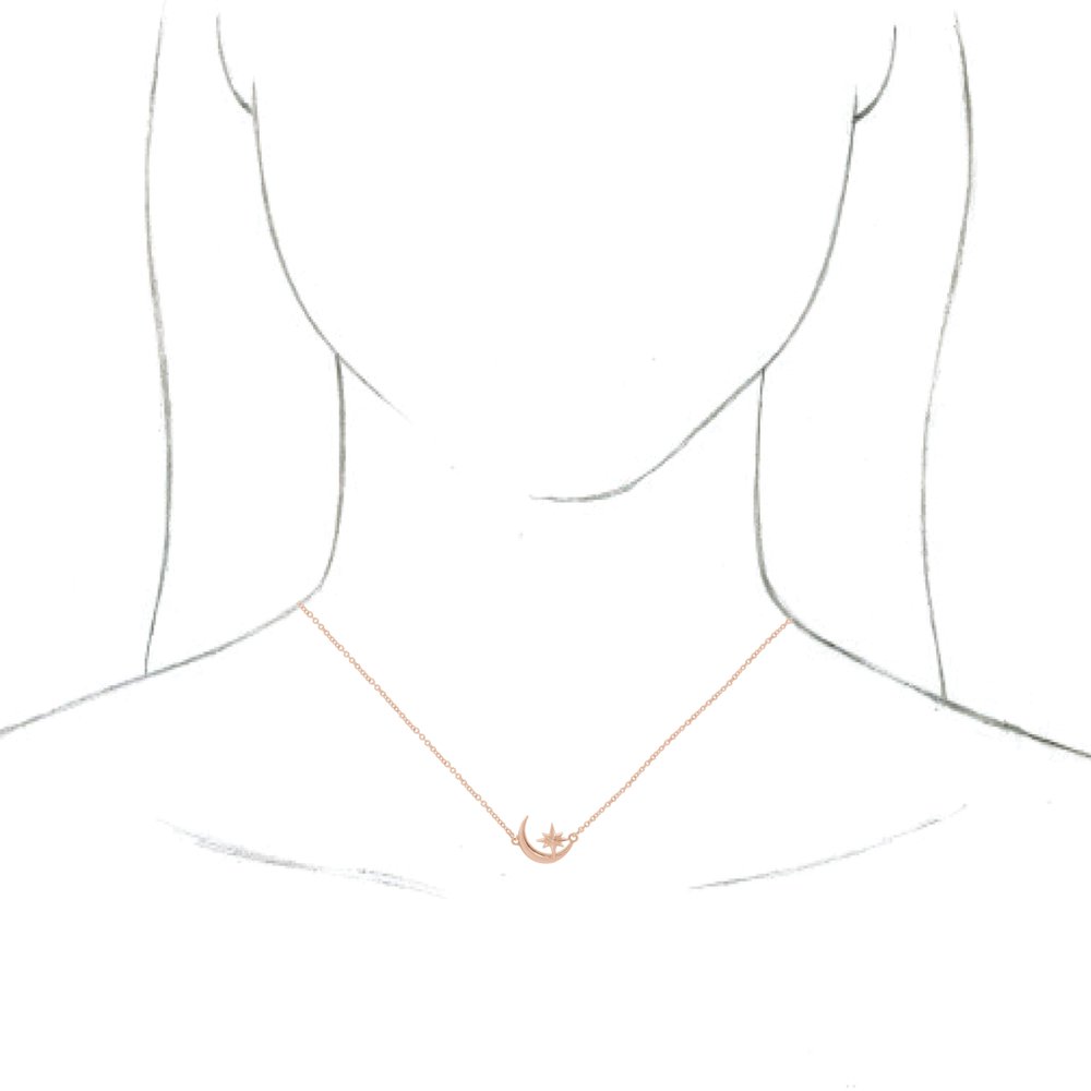 14k Rose Gold Crescent Moon and Star Necklace (13.06x9.65mm), 16-18"